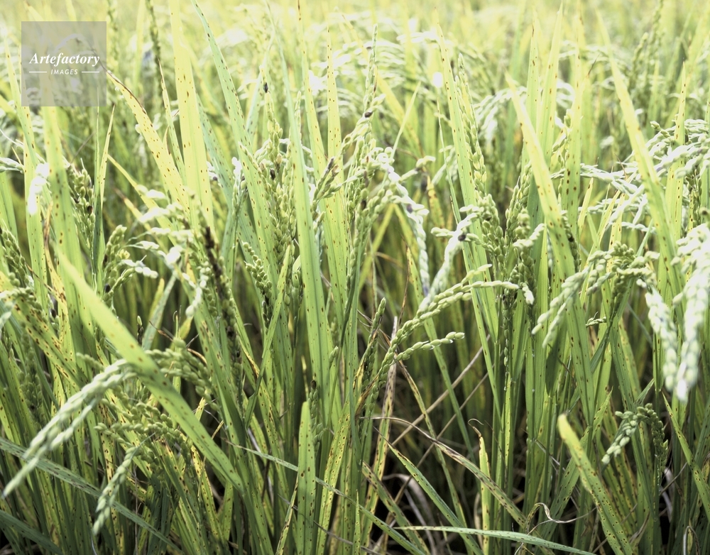 | 作品タイトル | 冷害、イモチ病、葉と籾の病斑、生育しない稲 | モデルリリース | なし | |
