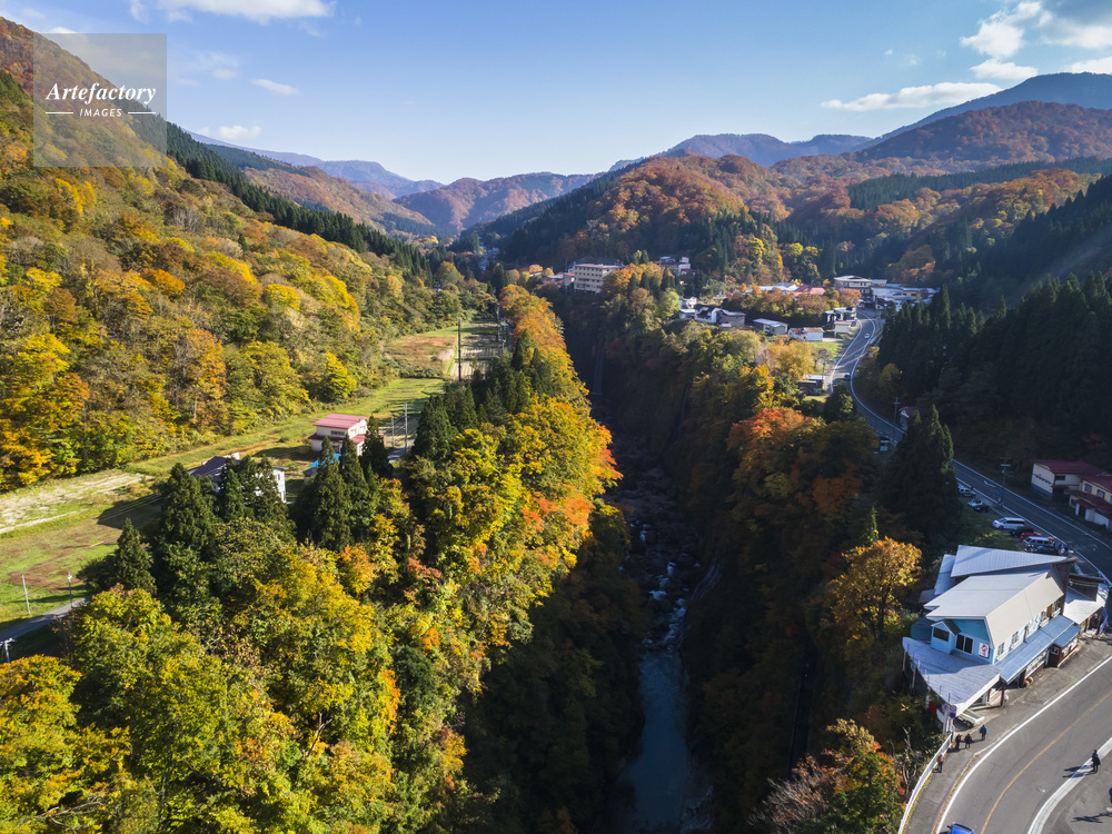 | キャプション | 皆瀬新処 小安峡 渓谷 紅葉 皆瀬川 栗駒国定公園 ドローン 空撮 | 制限事項 | ||