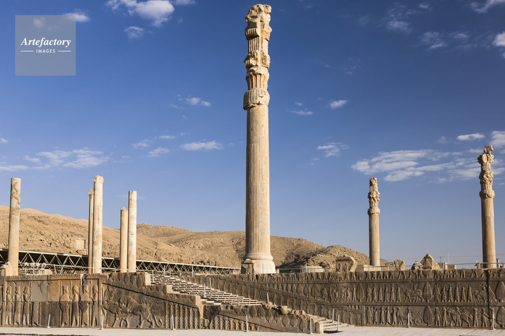 | キャプション | ペルセポリス アパダナの石柱と基壇の浮き彫り 世界遺産 | 制限事項 | ||