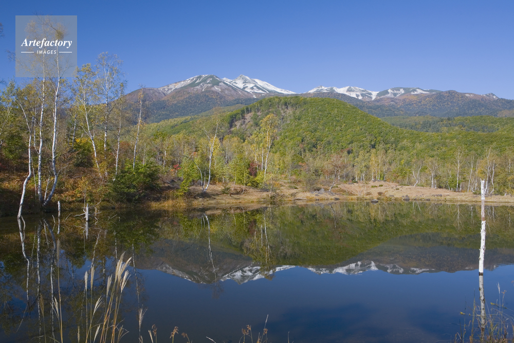 作品タイトル     秋のまいめ池と乗鞍岳 モデルリリース なし