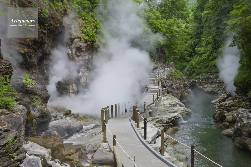| 作品タイトル | 新緑の小安峡大噴湯 | モデルリリース | なし | |