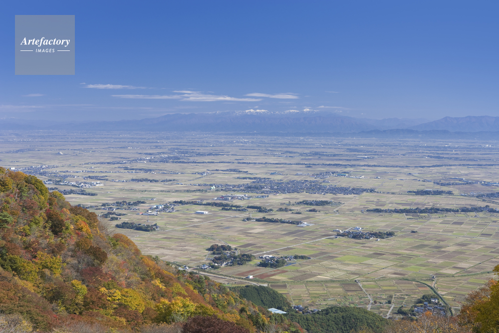| 作品タイトル | 弥彦山スカイラインから雪山の飯豊連峰と西浦原平野 | モデルリリース | なし | |