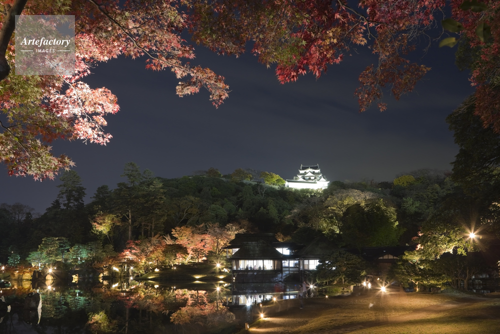 | 作品タイトル | 玄宮園と彦根城と紅葉のライトアップ | モデルリリース | なし | |