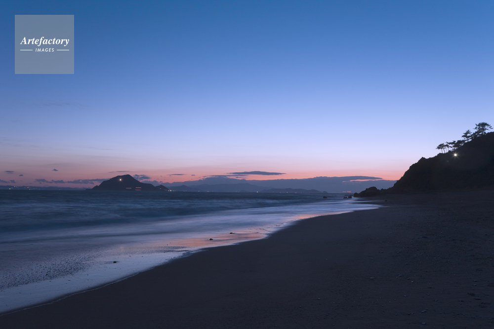 作品タイトル     伊良湖岬の恋路ケ浜と神島の夕景 モデルリリース なし