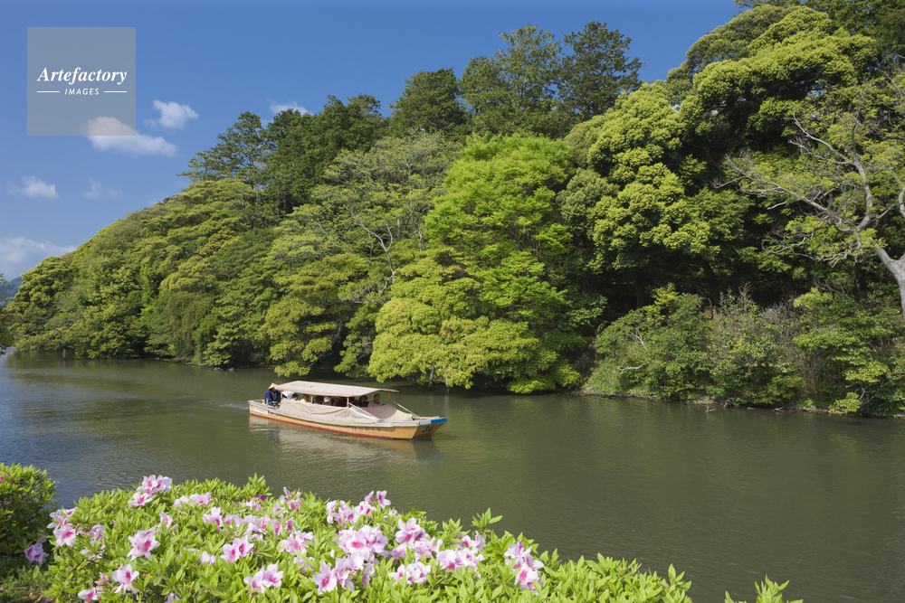 | 作品タイトル | 新緑とツツジの松江城堀川船めぐり | モデルリリース | なし | |