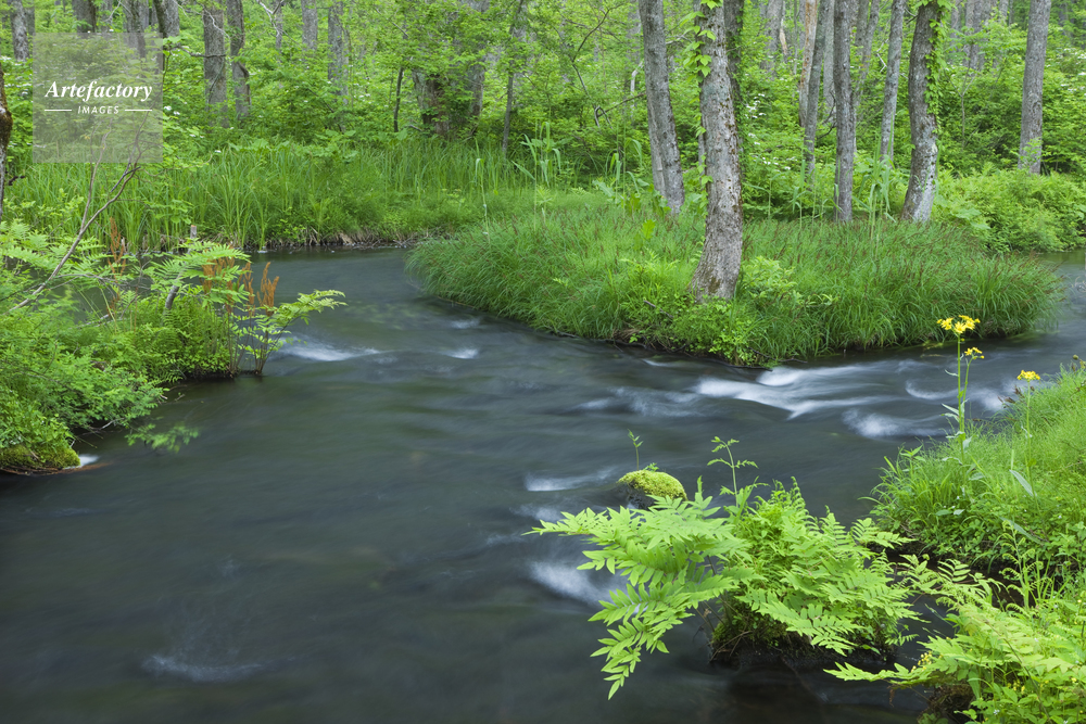 | 作品タイトル | サワオグルマ草と新緑の長瀬川 | モデルリリース | なし | |