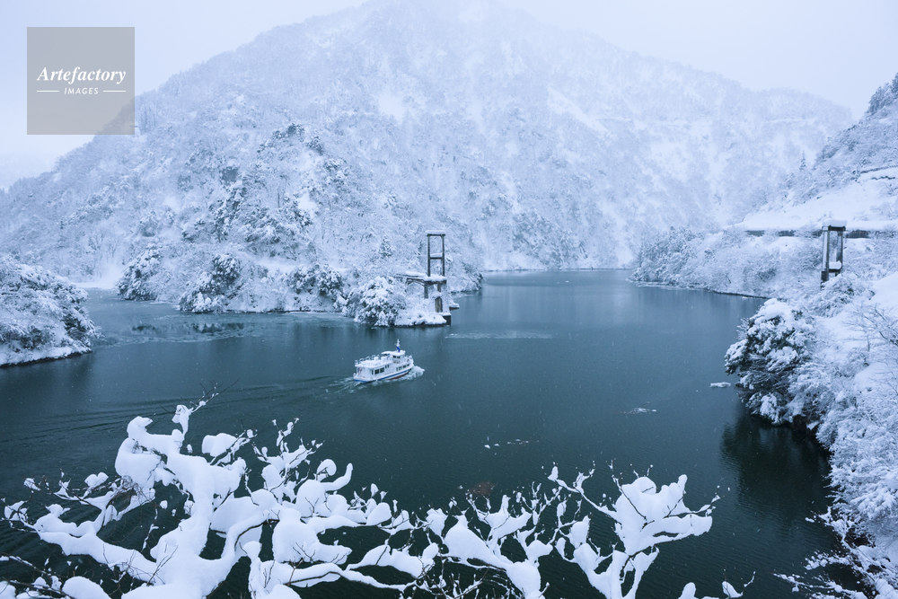 作品タイトル     雪の庄川峡と遊覧船 モデルリリース なし