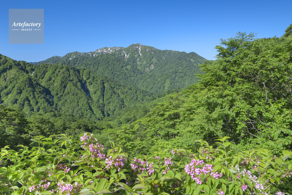 | キャプション | 世界自然遺産 天狗峠 白神ラインより撮影 ウツギの花 新緑 | 制限事項 | ||