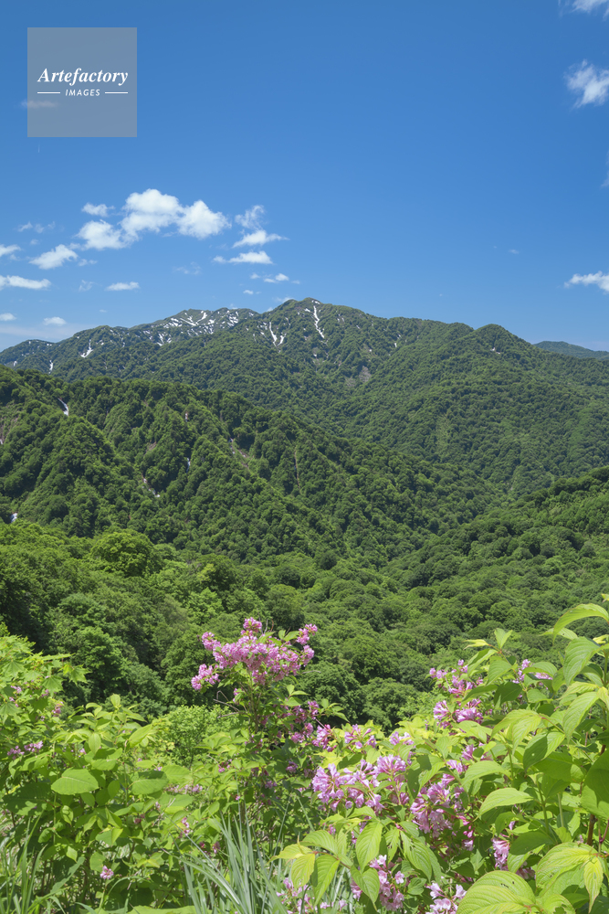 | キャプション | 世界自然遺産 天狗峠 白神ラインより撮影 ウツギの花 新緑 | 制限事項 | ||