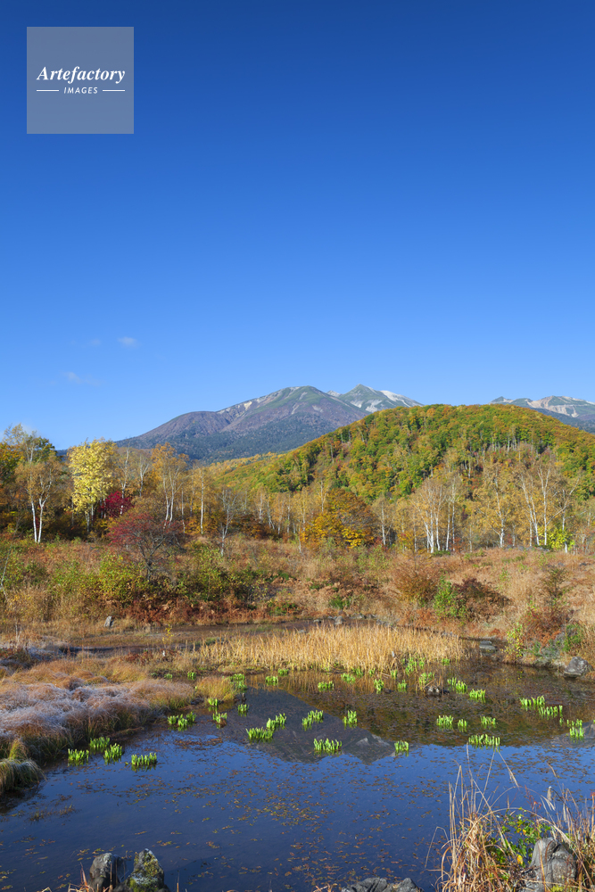作品タイトル     秋の偲ぶの池と乗鞍岳 モデルリリース なし