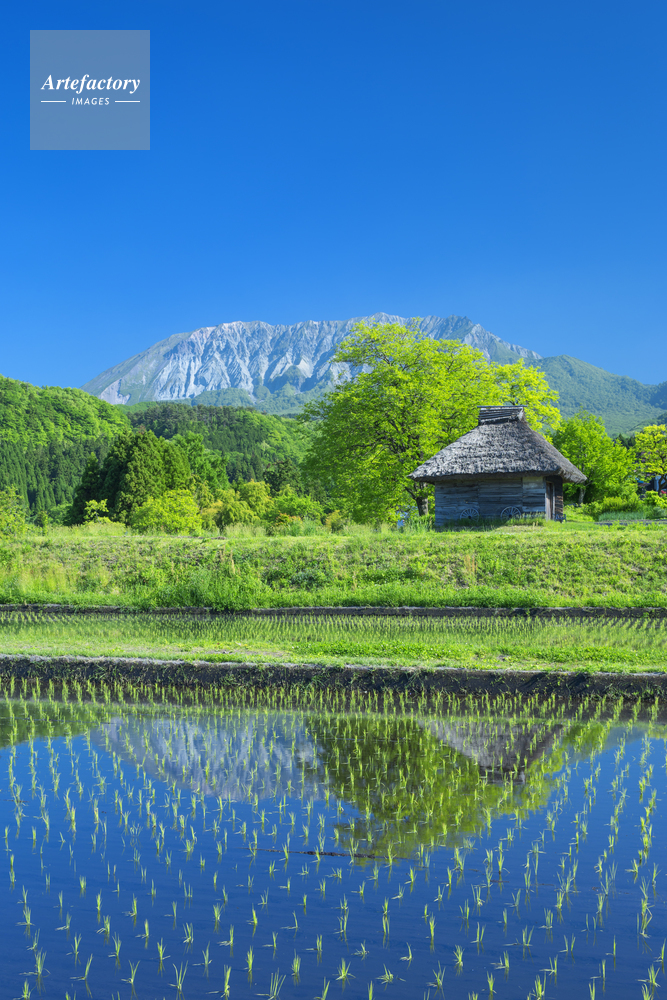 | 作品タイトル | 新緑の大山とカヤブキ小屋 | モデルリリース | なし | |