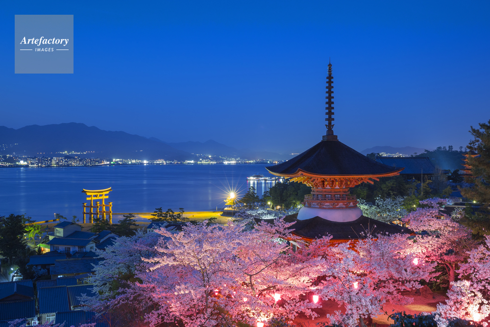 | 作品タイトル | 桜の厳島神社の夕景 | モデルリリース | なし | |