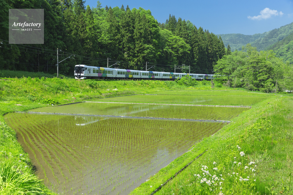 | 作品タイトル | 新緑の電車と水田 | モデルリリース | なし | |