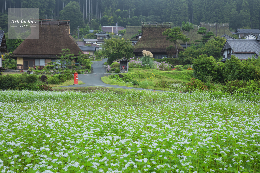 作品タイトル     ソバの花咲く美山かやぶきの里 モデルリリース なし