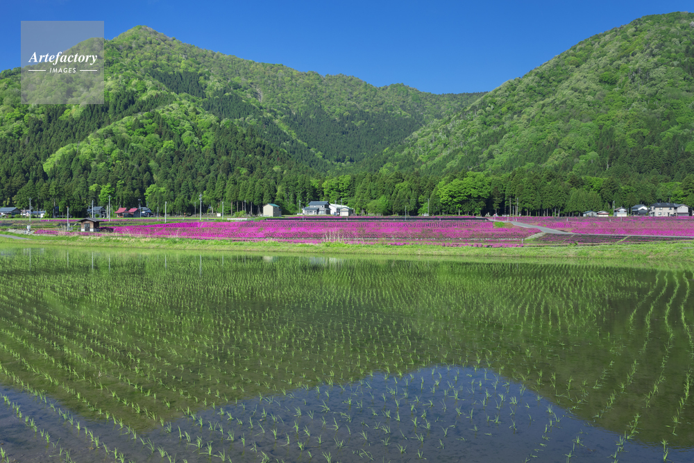 | 作品タイトル | 水田とシバザクラと飯降山 | モデルリリース | なし | |