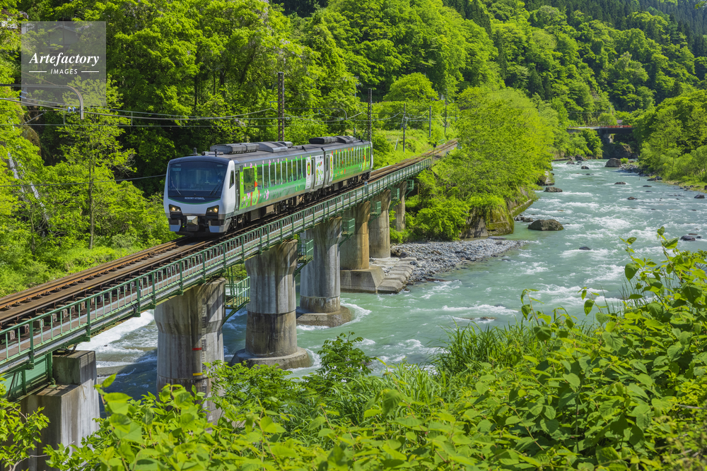 | 作品タイトル | 新緑のJR大糸線と姫川 | モデルリリース | なし | |