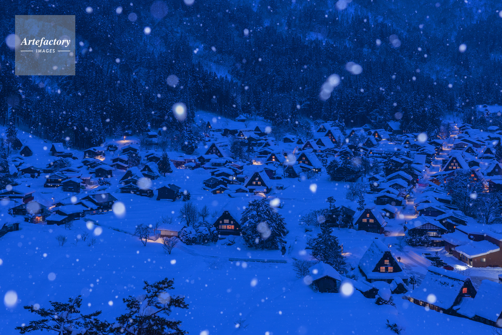 | 作品タイトル | 雪降る白川郷の夜景 | モデルリリース | なし | |