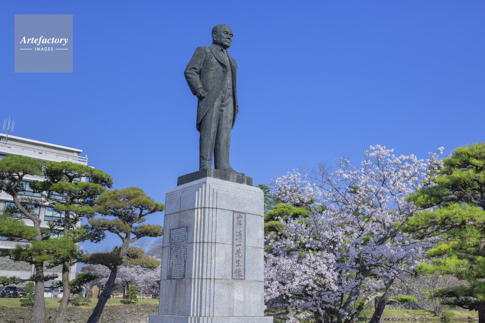 作品タイトル     岸清一像と桜 モデルリリース なし