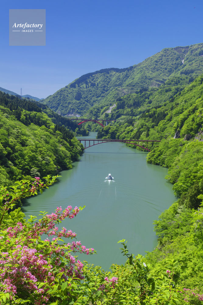 | 作品タイトル | ヤマウツギの花咲く庄川峡と観光船 | モデルリリース | なし | |