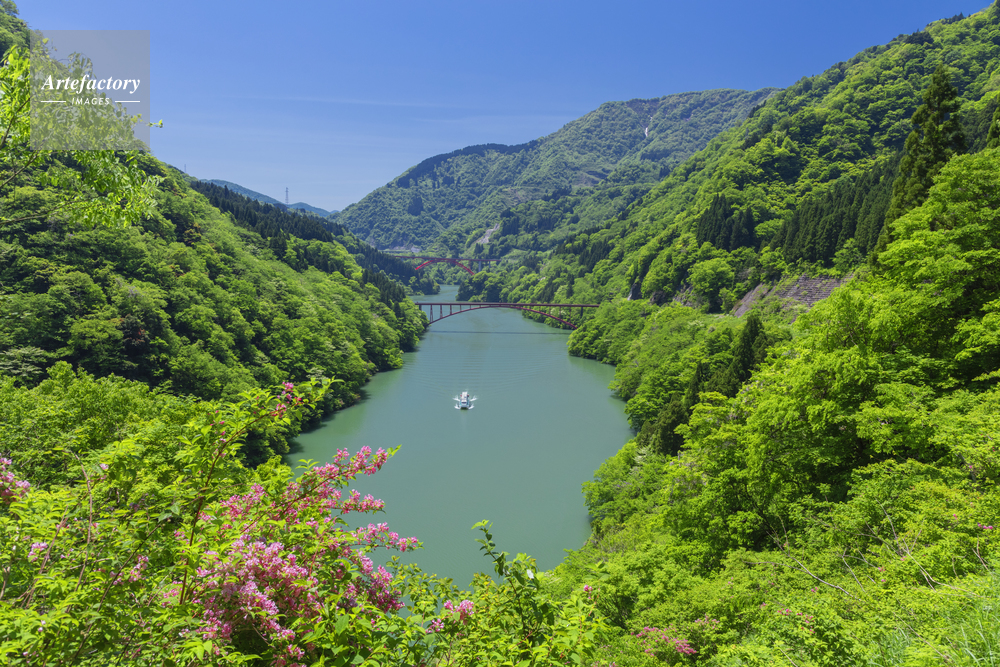 | 作品タイトル | ヤマウツギの花咲く庄川峡と観光船 | モデルリリース | なし | |
