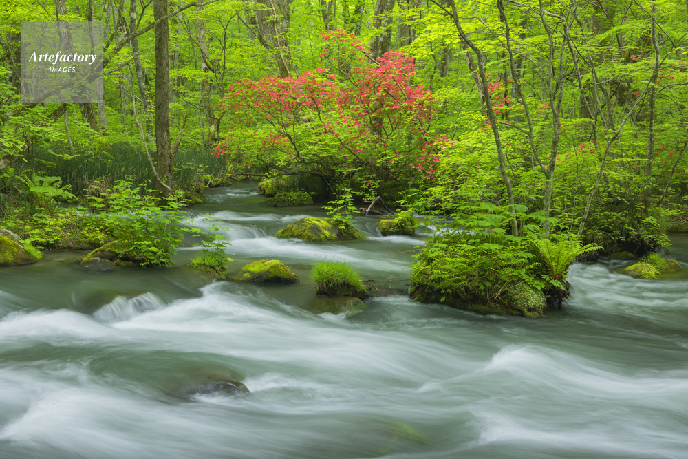 | 作品タイトル | ツツジ咲く新緑の奥入瀬渓流 | モデルリリース | なし | |
