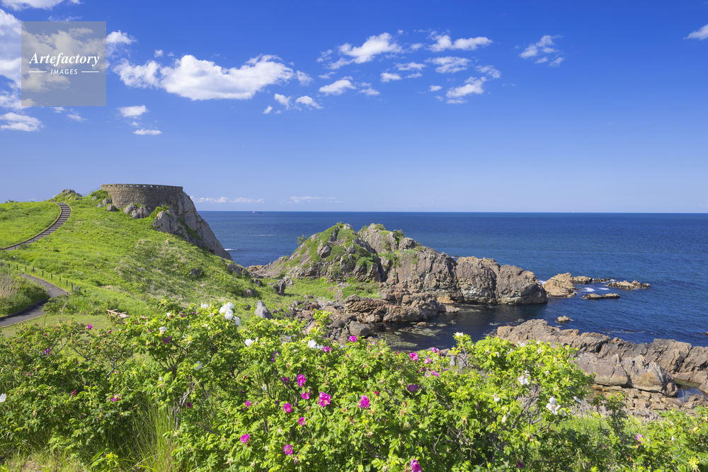 | 作品タイトル | ハマナスの花咲く葦毛崎展望台 | モデルリリース | なし | |