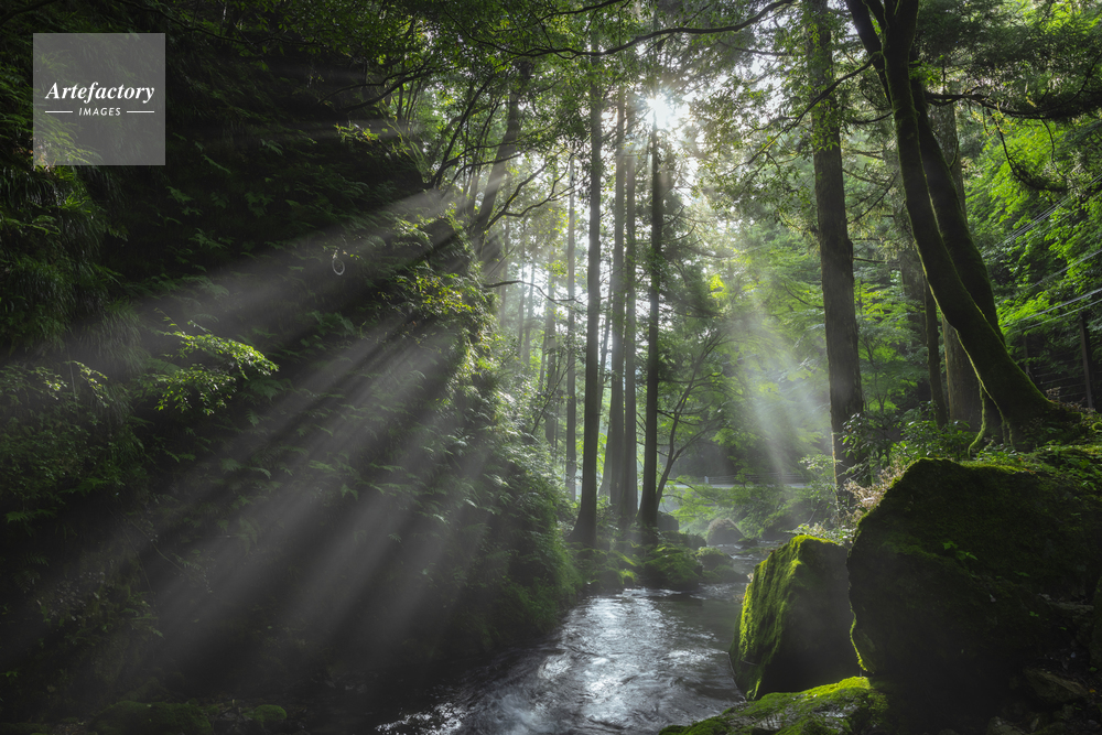 | 作品タイトル | 朝日と光芒の醒井峡谷 | モデルリリース | なし | |