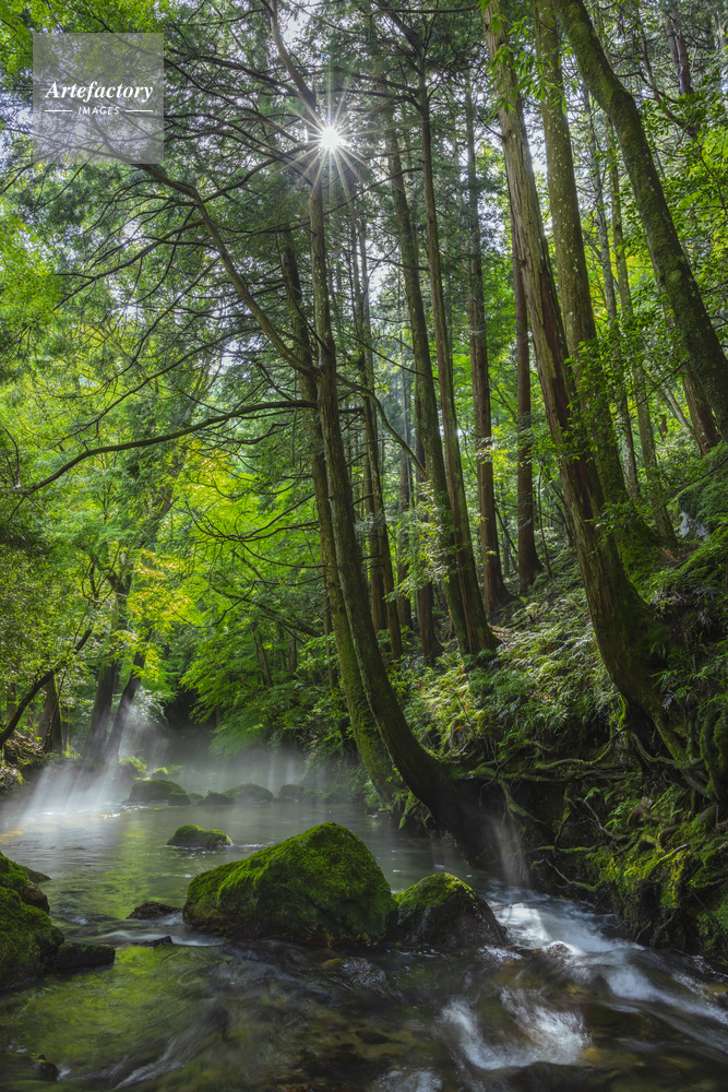 | 作品タイトル | 朝日と光芒の醒井峡谷 | モデルリリース | なし | |