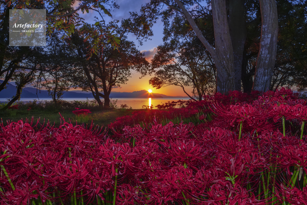 | 作品タイトル | 朝日の伊吹山と竹生島とヒガンバナ | モデルリリース | なし | |