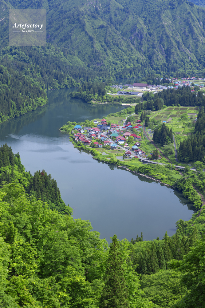 | 作品タイトル | 新緑の大志集落と只見川 | モデルリリース | なし | |