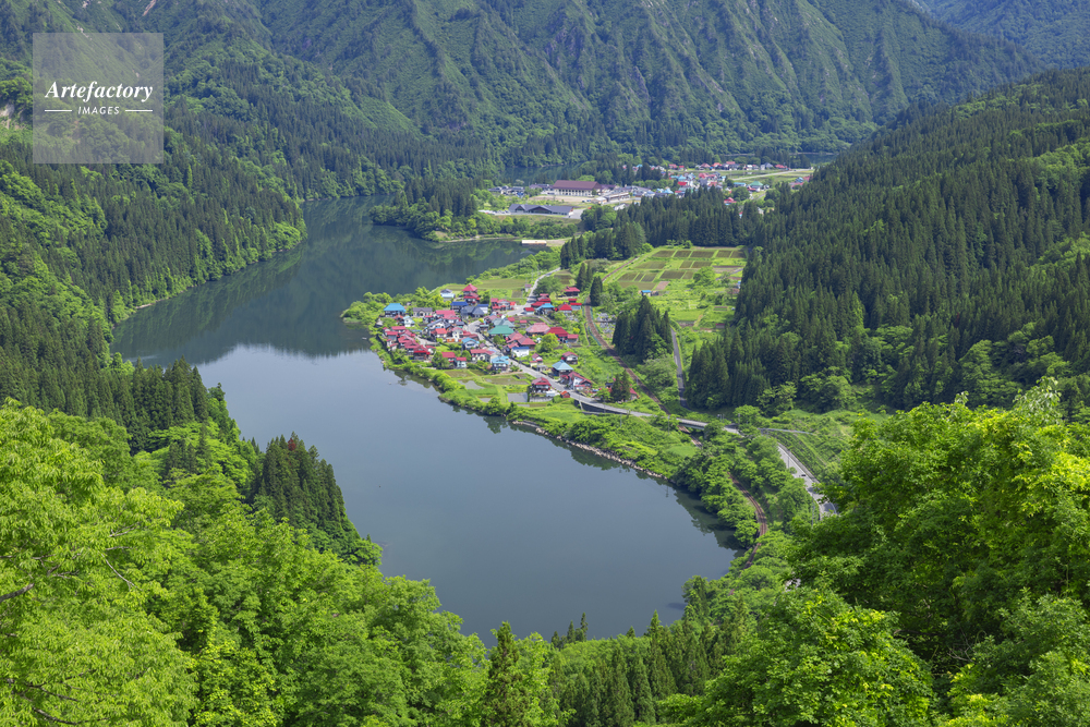| 作品タイトル | 新緑の大志集落と只見川 | モデルリリース | なし | |