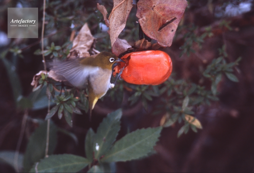 | 作品タイトル | 甘柿を食べるメジロ | モデルリリース | なし | |