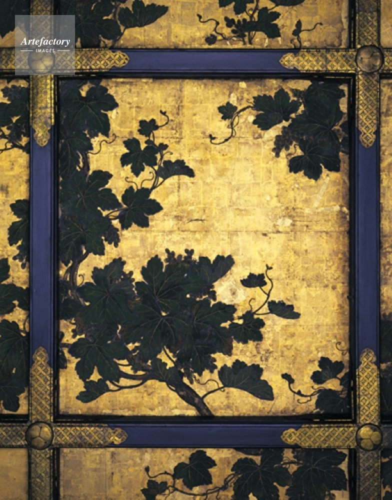 | キャプション | 遠侍,五の間,天井画,,北より3東より3,紙本金地著色,重要文化財,二の丸御殿 | 制限事項 | ||