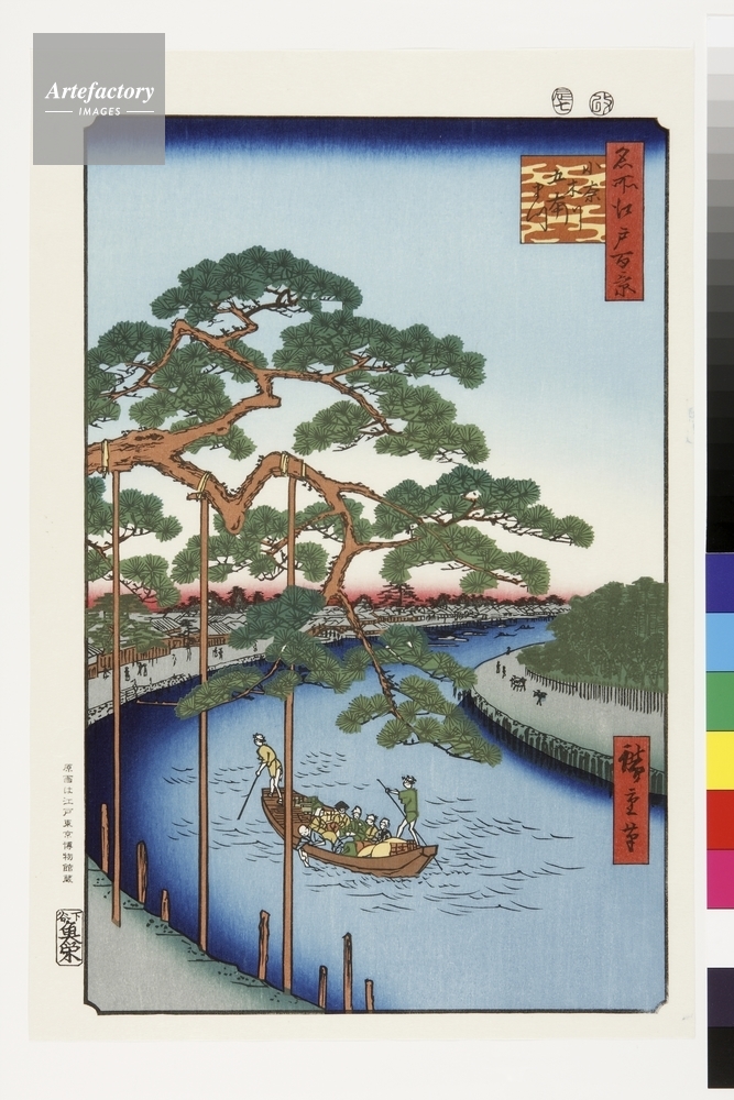 | キャプション | 浮世絵復刻版画 / 隅田川と中川を結ぶ、物資輸送用の水路として造られたのが小奈木川。名前は家康の命令で工事を担当した小奈木四郎衛からとった。この川岸には老松が五本あったが、一本を残して枯れてしまったという。広重が描いたのはその松であろう。 | 制限事項 | ||