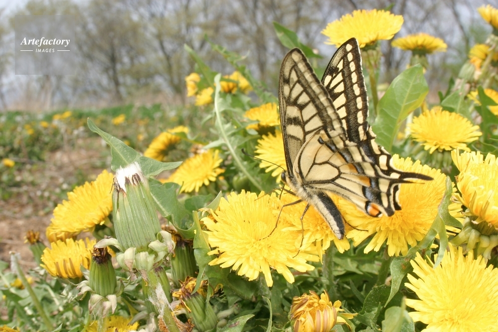 | 作品タイトル | タンポポの花の蜜を吸う、キアゲハ 「春の花畑」 | モデルリリース | なし | |