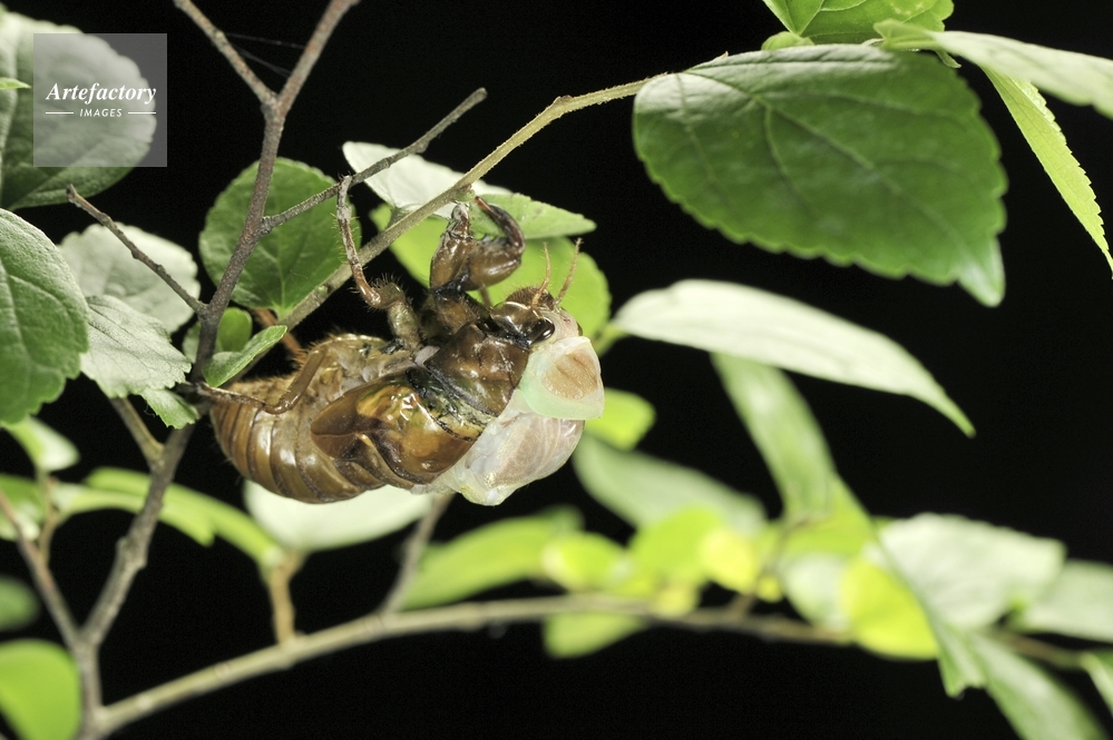 | 作品タイトル | アブラゼミの羽化 03 AM00:30 頭が出る | モデルリリース | なし | |
