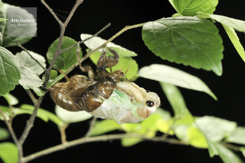 | 作品タイトル | アブラゼミの羽化 06 AM00:39 ゆっくりあしを引き抜いていく | モデルリリース | なし | |