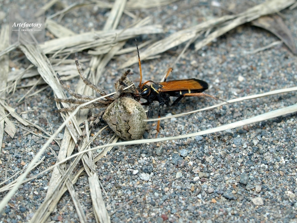 | 作品タイトル | キオビベッコウがオニグモを運んでる | モデルリリース | なし | |