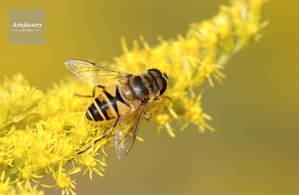 作品タイトル     ハナアブ セイタカアワダチソウの花 モデルリリース なし