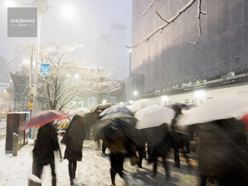 | 作品タイトル | 雪で早期帰宅する人々 | モデルリリース | なし | |