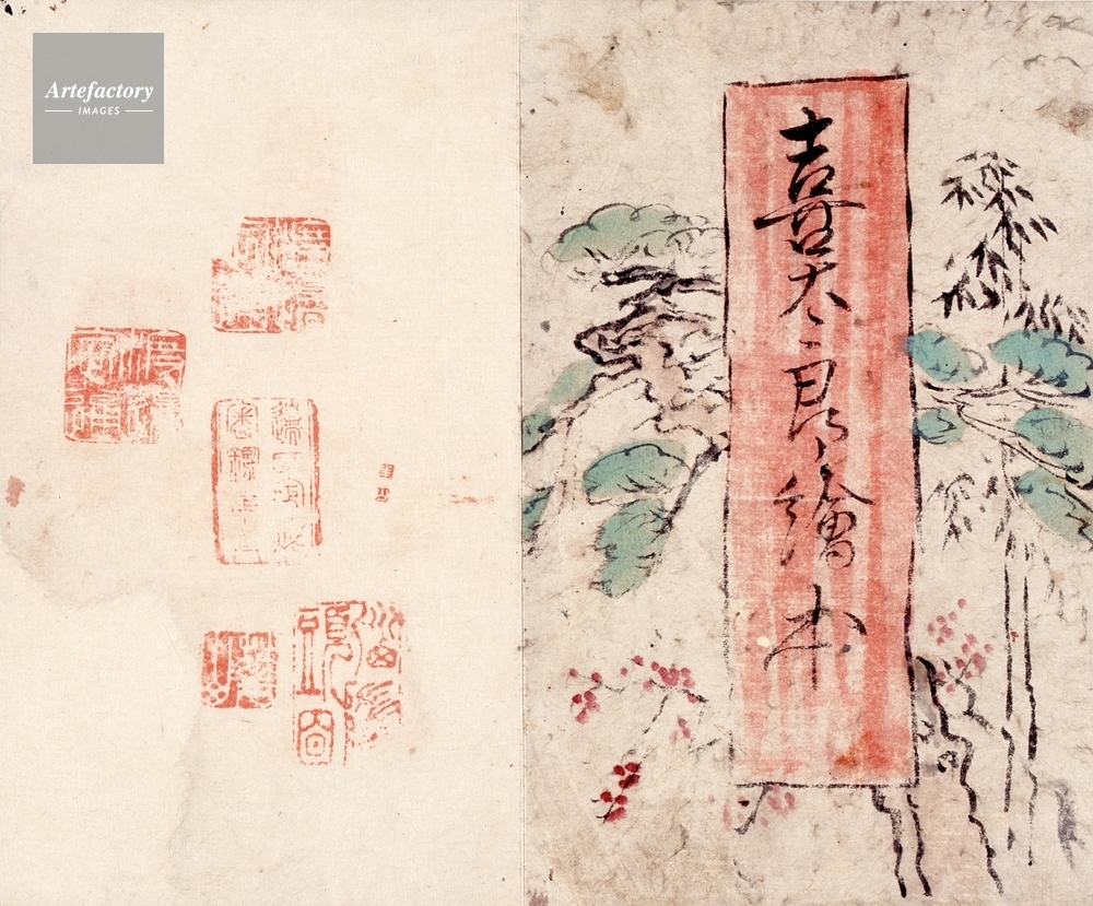 | 作品タイトル | 喜太郎絵本(26面) 「先人崋山戯画」題簽渡辺小崋夫人須磨 | モデルリリース | なし | |