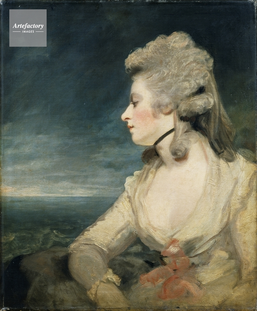 | キャプション | Half-length portrait of Mrs Mary Robinson (1758-1800) in profile. She has powdered hair, a black bow beneath her chin, and wears a white dress with a salmon pink bow. She looks over her right shoulder towards the sea in the background. | 制限事項 | ||