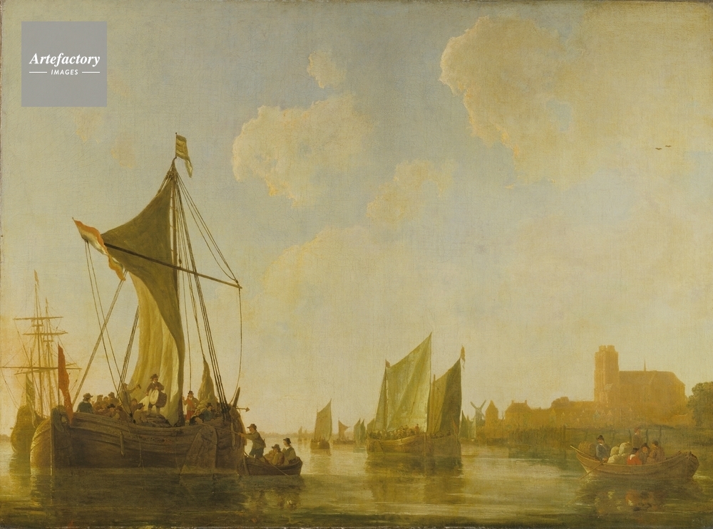| キャプション | Passage boats with passengers on the River Maas. A sprit-rigged passage boat on the left with the Dutch flag bears an officer with a red sash and a man is beating a drum. The Groote Kerk of Dordrecht is on the distant right. | 制限事項 | ||