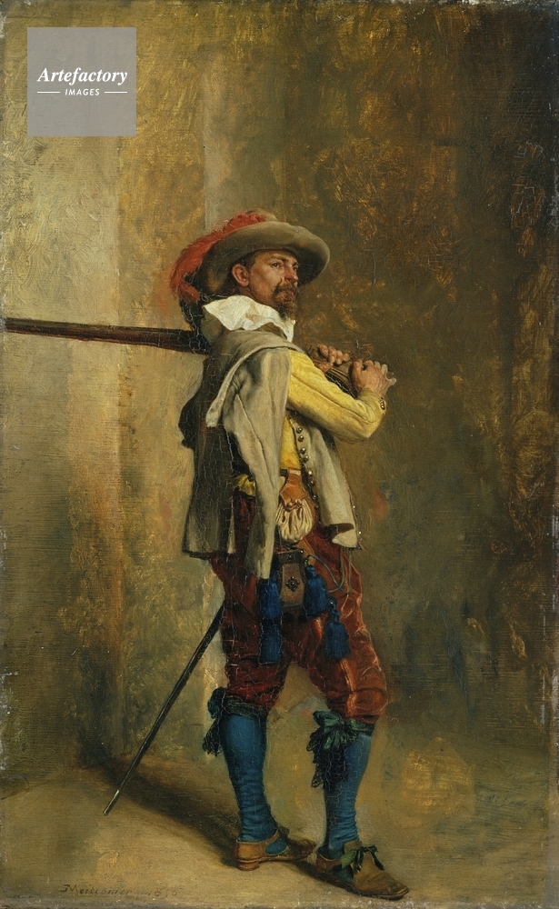 Full-length figure of a musketeer in early