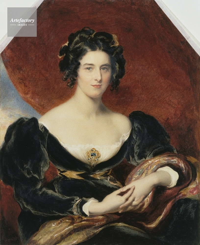 | キャプション | Half-length portrait of Sarah Brunsden, Lady Lyndhurst (1795-1834). She has black hair and wears a black dress with a brooch. Based on an oil portrait of 1827 (exhibited 1828) by Sir Thomas Lawrence now in a private collection. | 制限事項 | ||