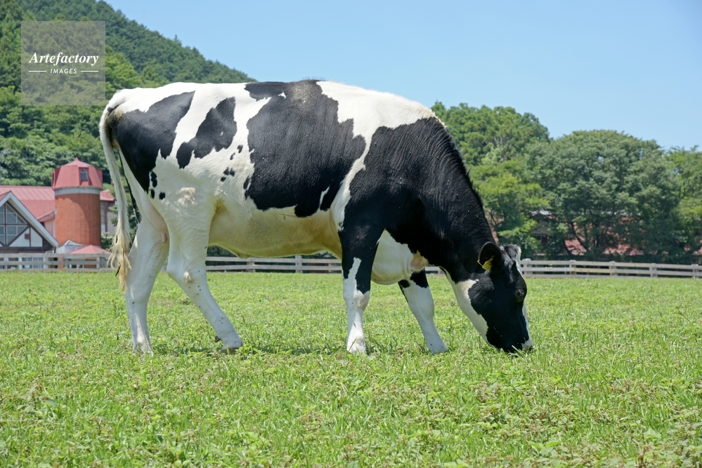 作品タイトル     ウシ ホルスタイン 草を食べる モデルリリース なし
