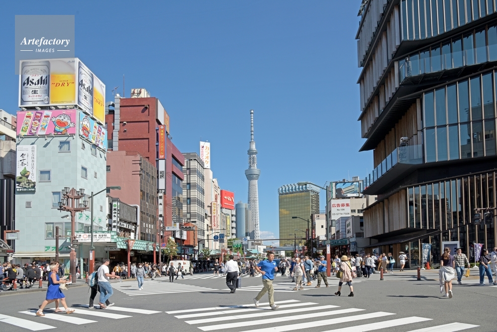 | 作品タイトル | 雷門交差点(スクランブル交差点)から東京スカイツリー | モデルリリース | なし | |