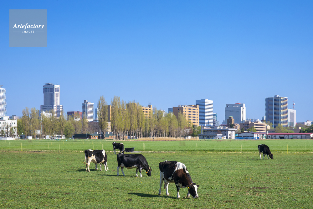 | 作品タイトル | 北大の第一農場のウシたちと札幌市街 | モデルリリース | なし | |