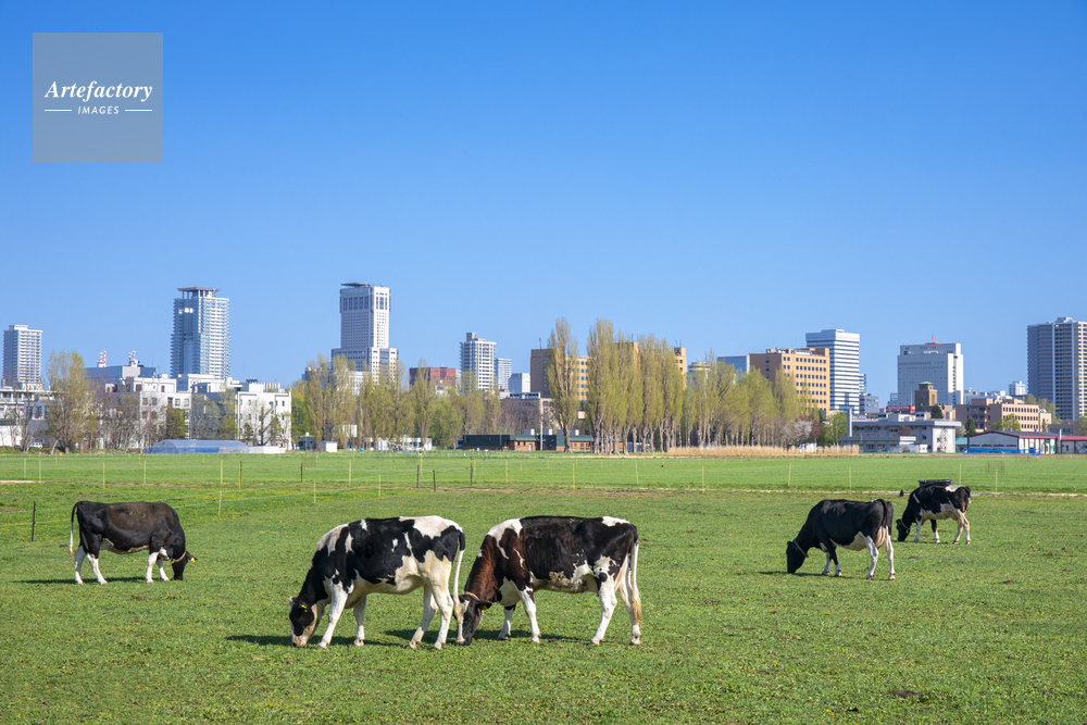 | 作品タイトル | 北大の第一農場のウシたちと札幌市街 | モデルリリース | なし | |