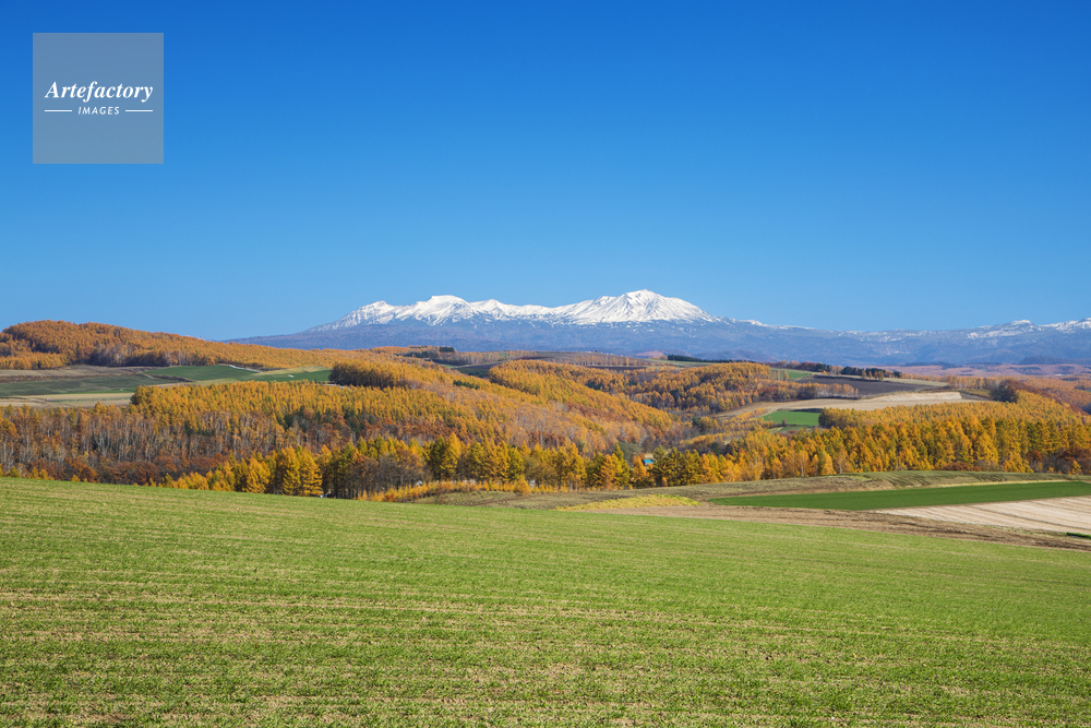 作品タイトル     カラマツの黄葉と大雪山 モデルリリース なし